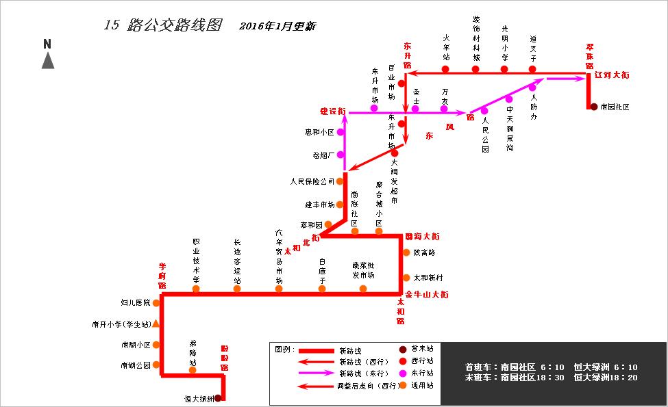 根據(jù)公交線路覆蓋區(qū)域要求,結(jié)合承包車主提出申請(qǐng),為方便青花大街與盼盼路交匯處以南附近小區(qū)居民乘坐公交出行,經(jīng)公司研究,從2016年1月26日起,對(duì)公交15路線路走向進(jìn)行局部調(diào)整,具體情況如下: