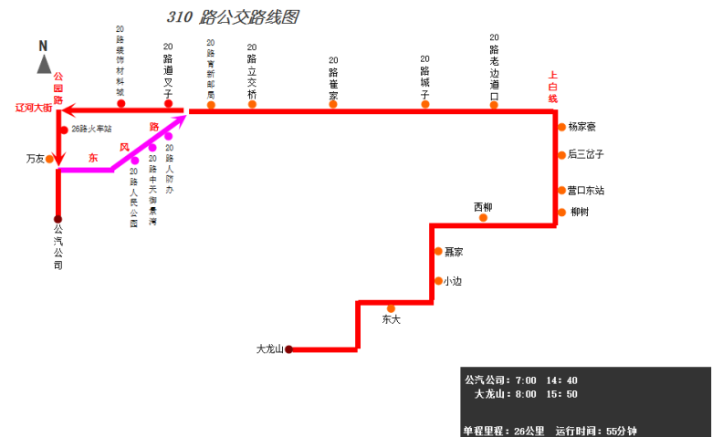 為推進(jìn)我市城鄉(xiāng)一體化化進(jìn)程,完善公交線路覆蓋網(wǎng)絡(luò),方便柳樹(shù)方向市民往來(lái)市區(qū)。結(jié)合其他客運(yùn)線路基礎(chǔ)和實(shí)地調(diào)研,公汽公司于9月30日起開(kāi)通公交310路。