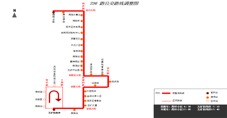 澄湖西路沿線“乘降站”(營口匯豐工程機(jī)械制造公司)、進(jìn)步路沿線“進(jìn)步路”雙向站位、澄湖西路沿線“大族冠華”、“金湖水岸小區(qū)”、“自貿(mào)區(qū)管委會”、“五礦大廈”雙向站位,共計(jì)6處。(附:236路公交路線調(diào)整圖)