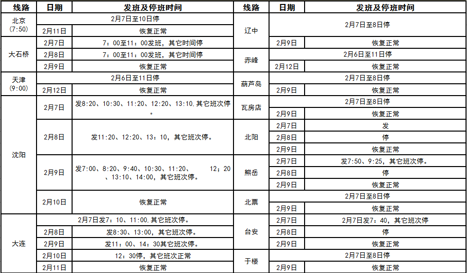 2016年春節(jié)假期班次發(fā)車時間